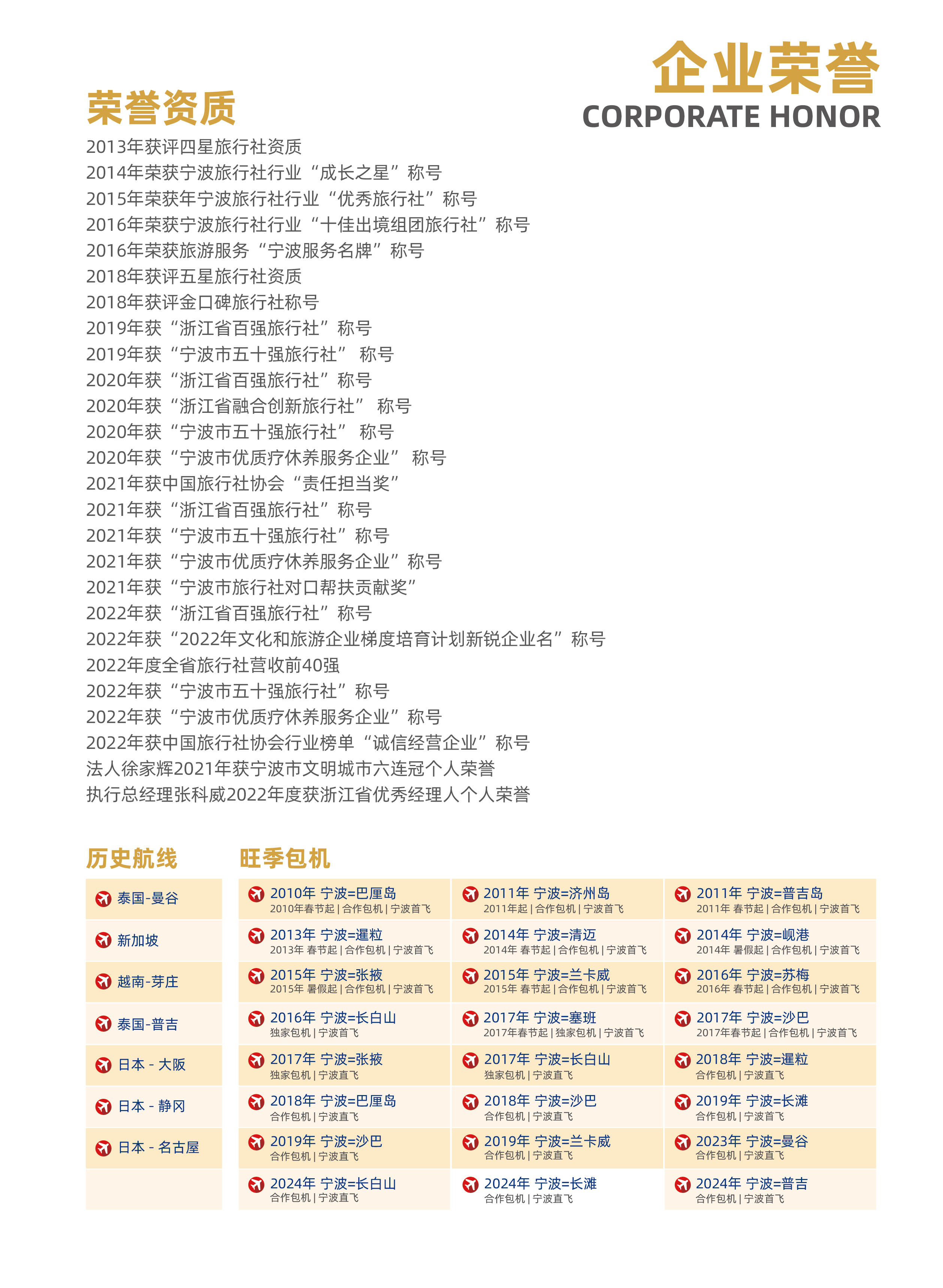 展望未来,公司将继续致力于为个人、机关、团体、企事业单位提供优质的旅游产品和专业的服务,为客户带来高品质的“快乐旅游、快乐享受”,努力成为宁波市值得信赖和尊重的国际化大型旅游运营商。